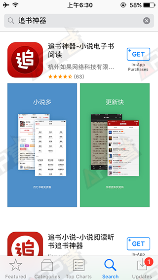 圖:App Store美國區搜索“追書神器”的結果